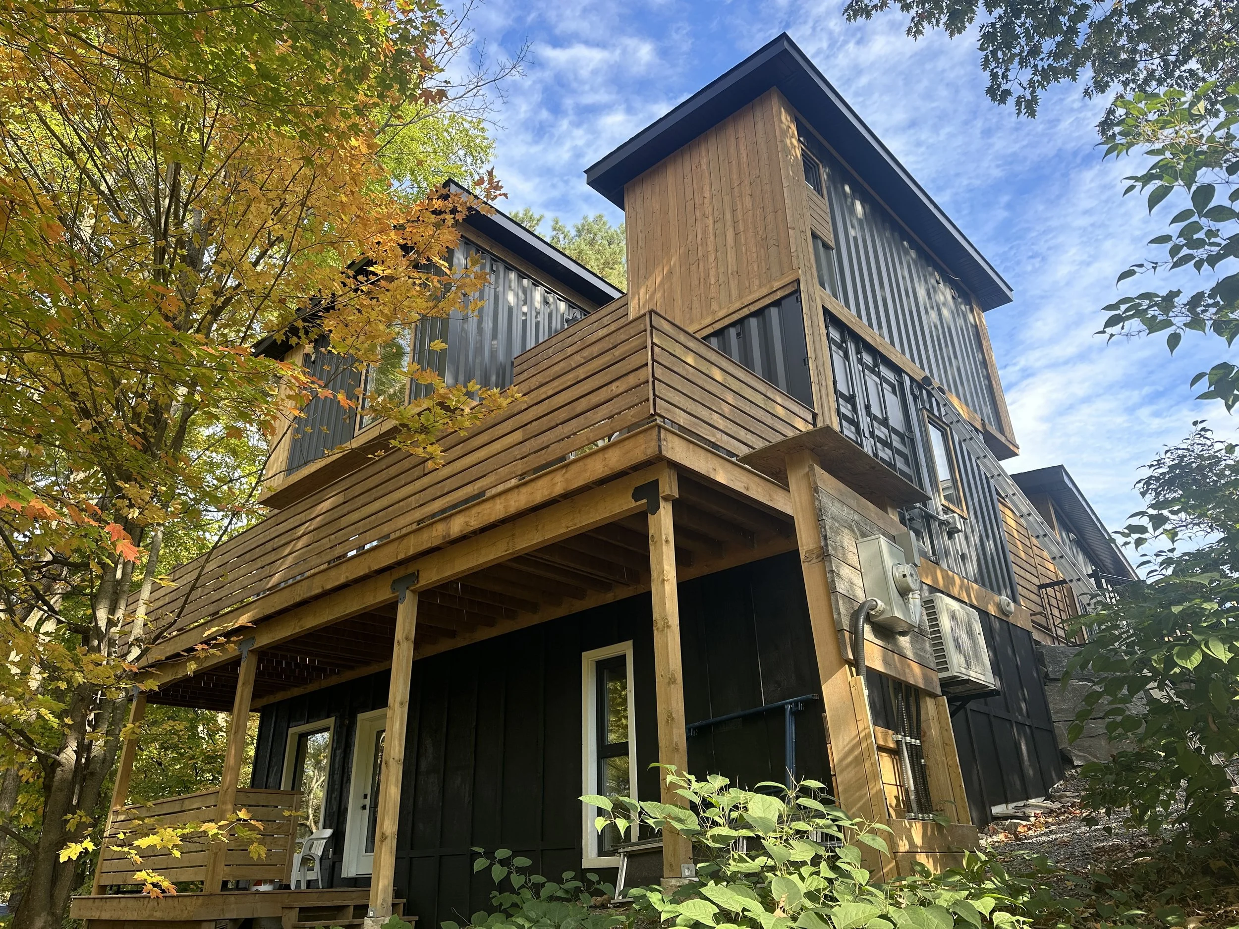 A 5-unit (3-storey) 2,000 SF modular multi-use retail and housing development designed and built by Ballance Containers in the tourist town of Port Carling in the Township of Muskoka Lakes. The compact site thoughtfully combines two commercial units and three residential units, delivering flexible retail space and comfortable seasonal accommodation to support the influx of visitors during peak summer months. The project showcases efficient modular construction, striking a balance between functional design and the lakeside community’s character.
